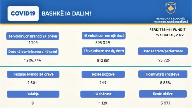 Gjatë kësaj periudhe janë konfirmuar edhe 249 raste të reja, nga 2 mijë e 804 testime.
