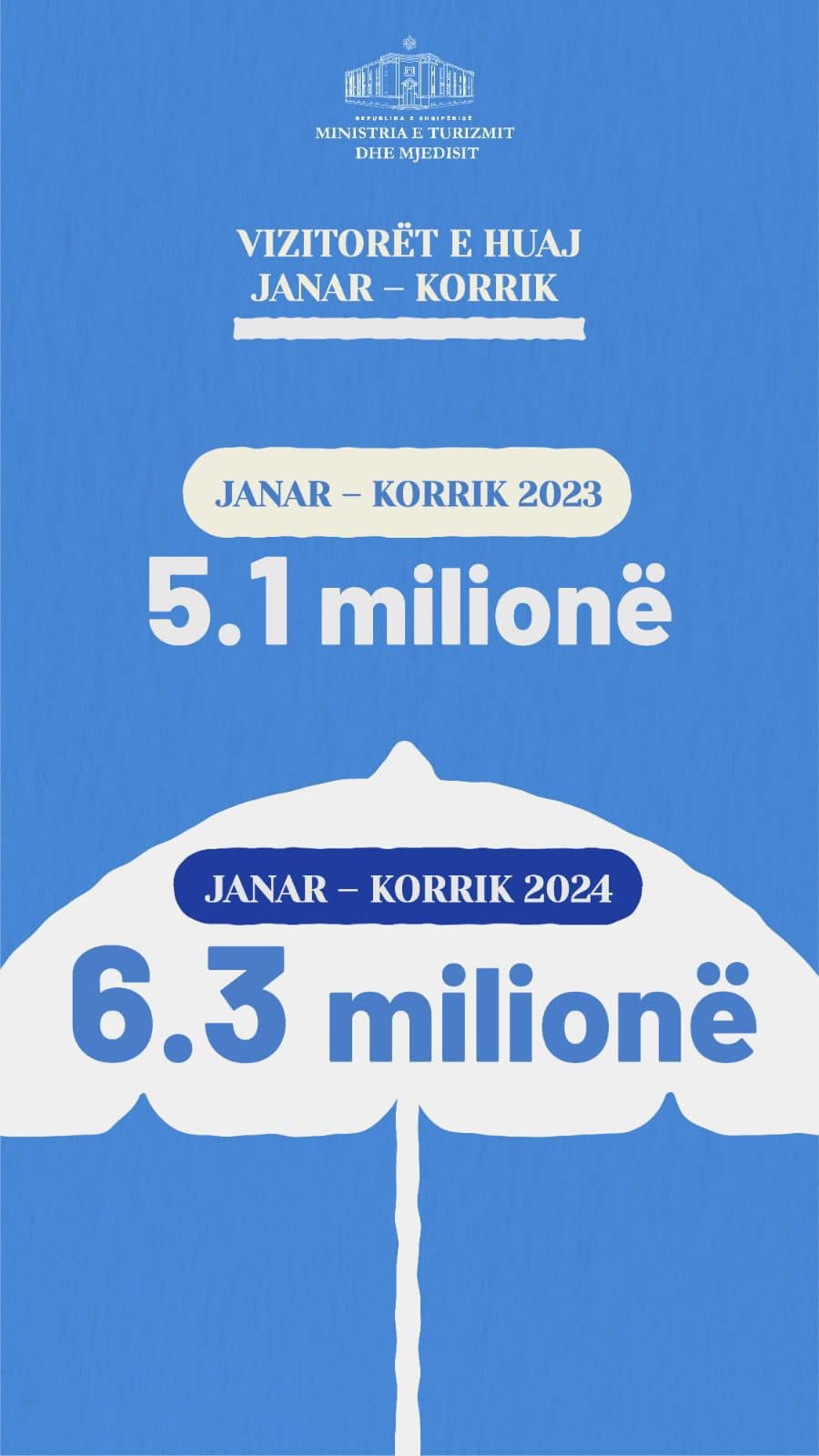 Siç shkruan Rama, në periudhën janar-korrik 2023, Shqipërinë e kanë vizituar 5.1 milionë turisë, ndërsa në periudhën e njëjtë të vitit 2024, 6.3 milionë turist, transmeton Arbresh.info.