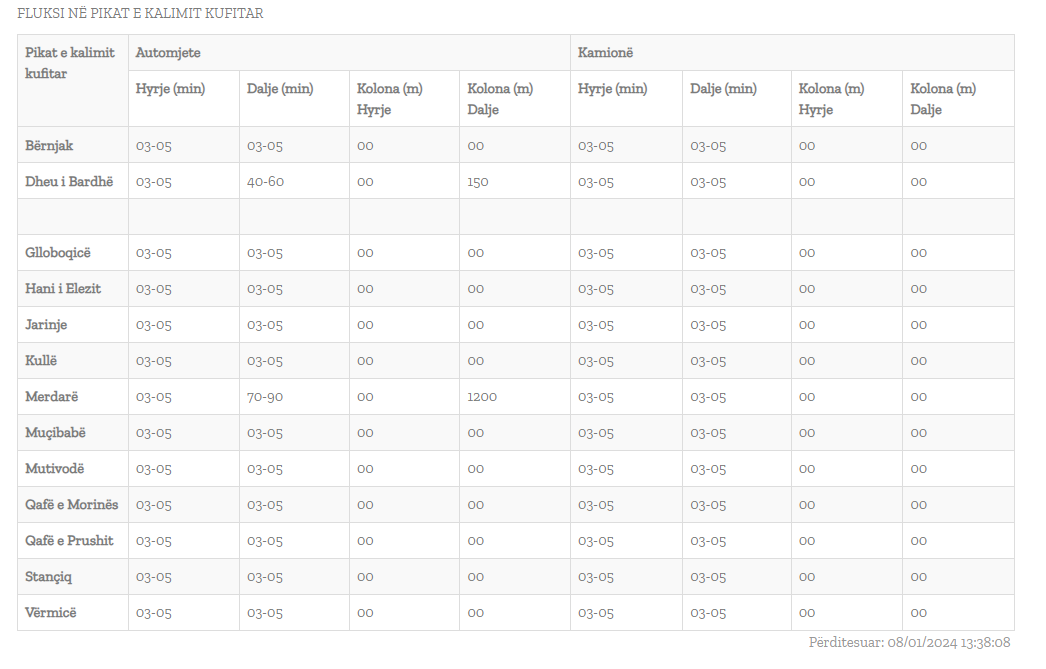 Sipas Qendrës për Menaxhim Kufitar, pritjet më të gjata janë te pikë kalimi kufitar në Merdarë dhe te Dheu i Bardhë, shkruan Arbresh.info.