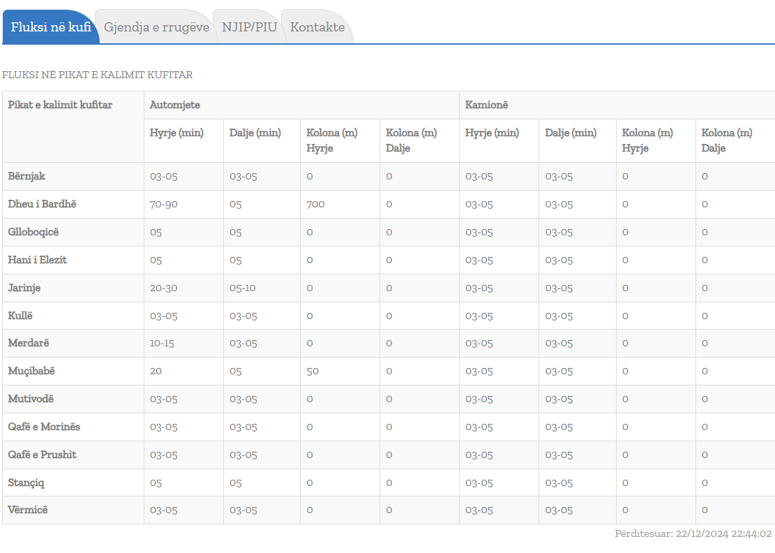 Kështu ka bërë të ditur Qendra Kombëtare për Menaxhim Kufitar në përditësimin e fundit të të dhënave në lidhje me gjendjen në pikat kufitare.