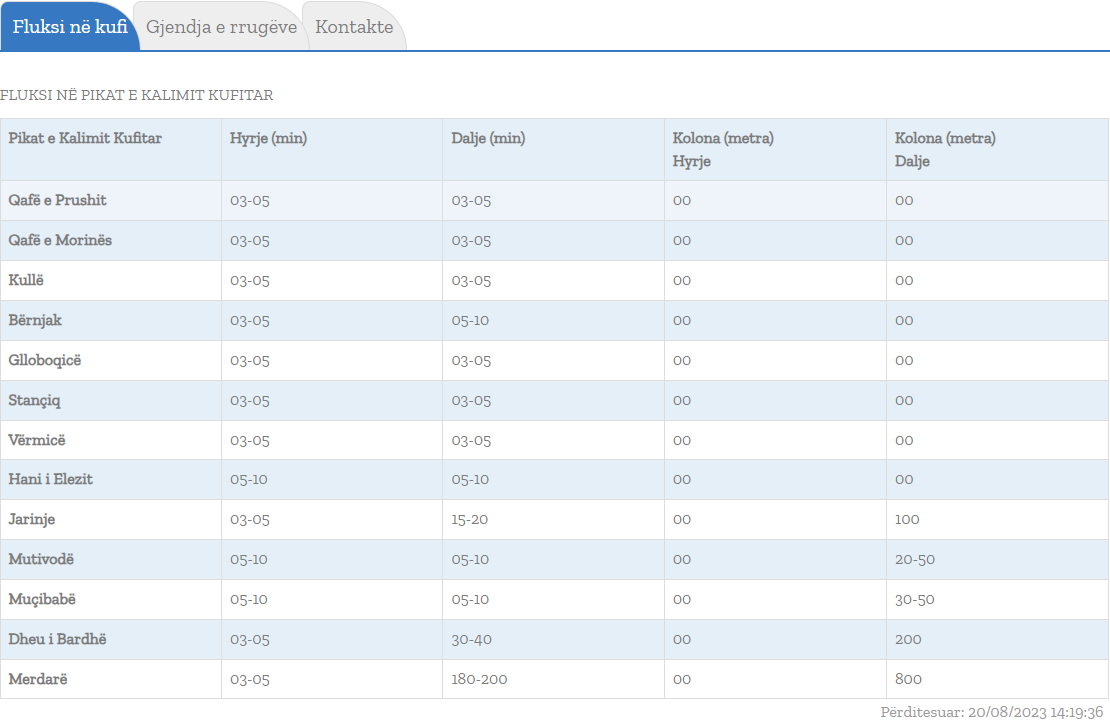 Kurse në pikë kalimit kufitar të Dheu i Bardhë, pritjet zgjasin deri në 40 minuta në dalje nga vendi, ndërsa kolona është e gjatë 200 metra.