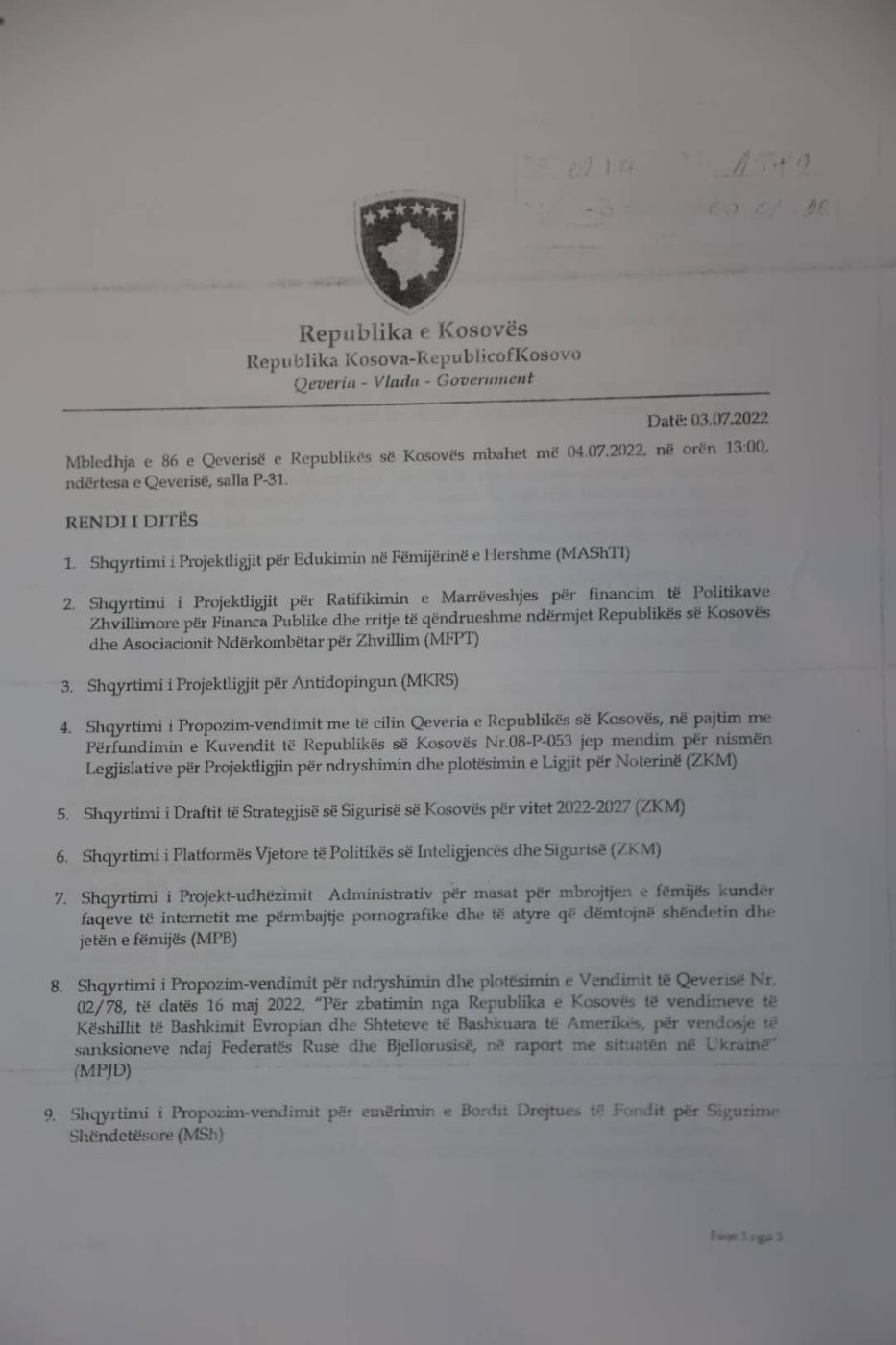 Më poshtë mund t’i gjeni të gjitha pikat e rendit të ditës: