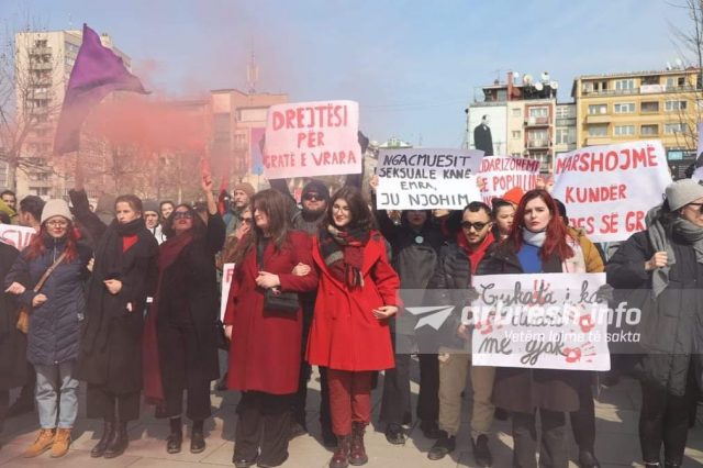Me moton “Marshojmë s’festojmë”, dhjetëra gra, protestuan sot në Prishtinë, në Ditën Ndërkombëtare të Gruas – 8 Mars.