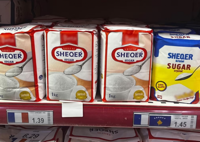Ekipi i Radios Evropa e Lirë vizitoi këtë javë disa dyqane ushqimore në Prishtinë, ku hasi në sheqer më të shtrenjtë se sheqeri i importuar, në salcë më të shtrenjtë apo në peceta më të shtrenjta.