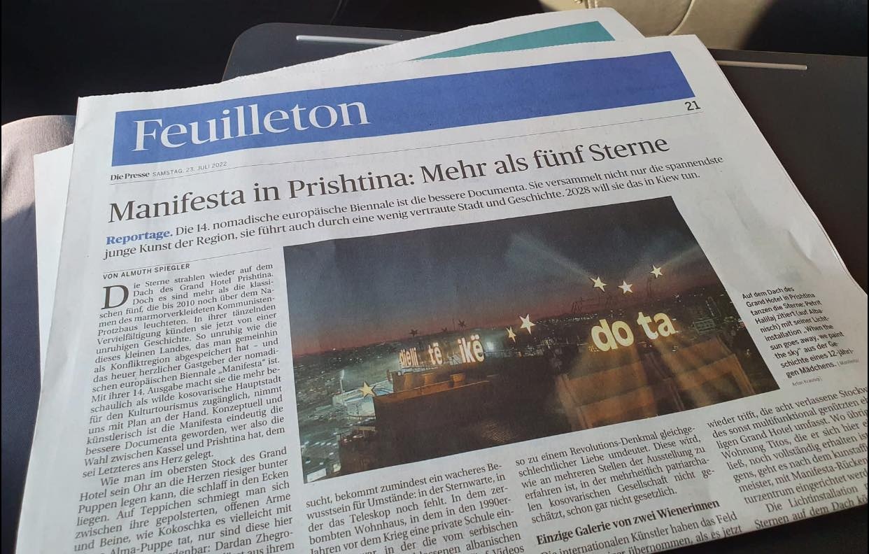 Kryetari i Prishtinës, Përparim Rama ka ndarë sot përmes facebook-ut, shkrimin e një gazete austriake rreth festivalit Manifesta Biennial që po mbahet në Prishtinë.