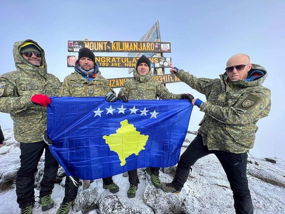 “Nënoficerët e FSK-së, Besart Kasumi, Faton Krasniqi, Arben Rexhepi dhe Ismet Istogu, pas disa ditë ecjesh mjaft sfiduese, sot kanë arritur të ngjiten në Kilimanxharo, majën më të lartë në kontinentin afrikan me lartësi prej 5895 metra”, ka shkruara Mehaj.
