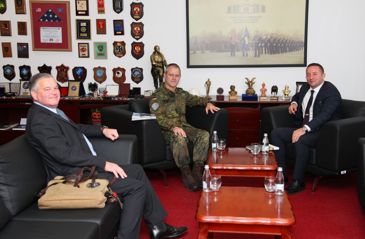 Ministri i Mbrojtjes, Armend Mehaj, e ka pritur sot në takim drejtorin e Ekipit Këshillues dhe Ndërlidhës të NATO-s (NALT), Gjeneralbrigade Joachim Hoppe me zëvendësdrejtorin e ri të NALT-it, Paul Shewry.