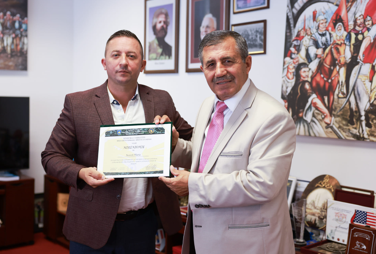 Ministri i Mbrojtjes, Armend Mehaj, ka pritur në takim shkrimtarin Nustret Pllana, të cilin e shpërbleu me mirënjohjeje për kontributin dhe përkushtimin në mbrojtjen e vlerave kombëtare si dhe ndaj qëndresës ndaj okupatorit serb, si pjesë e Ushtrisë Çlirimtare të Kosovës.