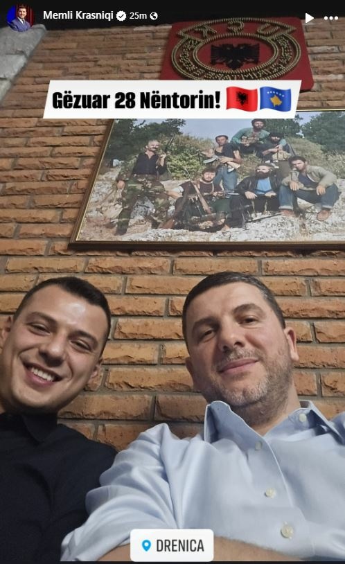 Kryetari i PDK-së, Memli Krasniqi, po feston 28 Nëntorin me Endritin, djalin e ish-presidentit Hashin Thaçi në Drenicë.