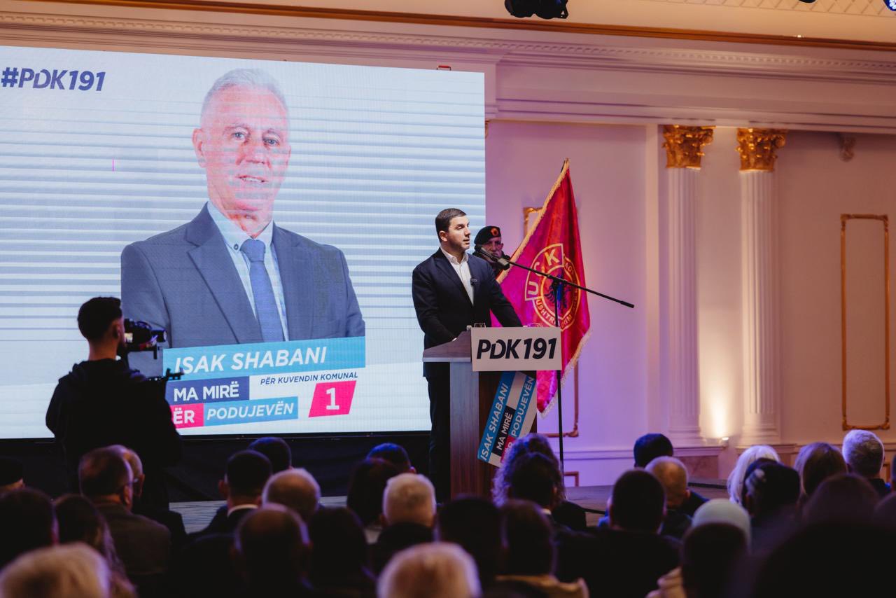 “Çdo votë është një mundësi ma shumë për ndryshim, çdo votë është një mundësi më shumë drejt fitores. E nga sot dëshiroj ta përmbyll me mesazhin se për Podujevën ma mirë është me numrin 191 dhe me PDK-në. Ma mirë për Podujevën është me Isak Shabanin”, ka theksuar lideri i PDK-së. Ndërkaq, kandidati i PDK-së për kryetar të Komunës Podujevës, Isak Shabani duke i falënderuar të gjithë për përkrahjen, u zotua për zhvillim ekonomik, subvencione në bujqësi, modernizim të shkollave, shërbime shëndetësore cilësore.