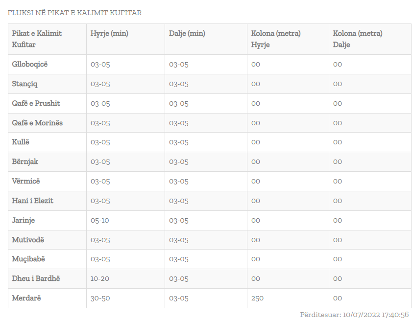 Sipas Ministriasë së Punëve të Brendshme, përkatësisht Qendra e Menaxhimit të Kufijve, në pikën kufitare Merdarë, pritja për të hyrë në Kosovë mbërrin deri në 50 minuta ndërsa kolonat janë të gjatë deri në 300 metra.