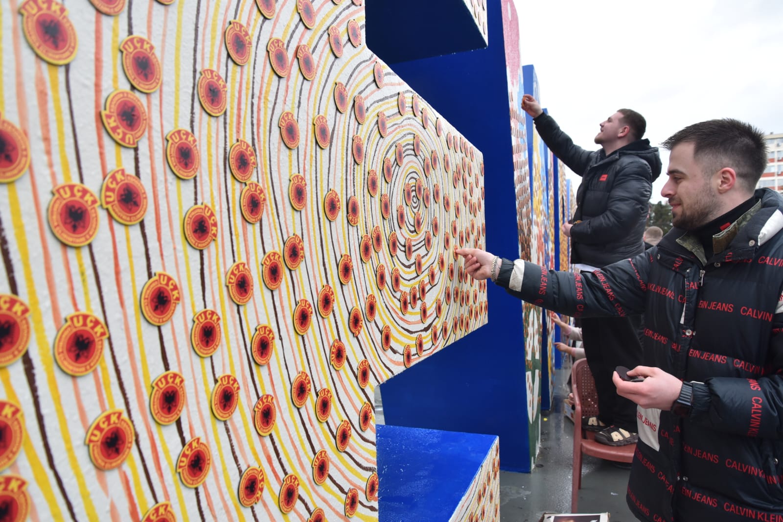 Sipas njoftimit, pas “burgosjes” simbolike me rrethoja hekuri dhe mbishkrimit “Kosova e burgosur!”, këtë mëngjes atij iu vendosën edhe 5000 emblema magnetike të UÇK-së.