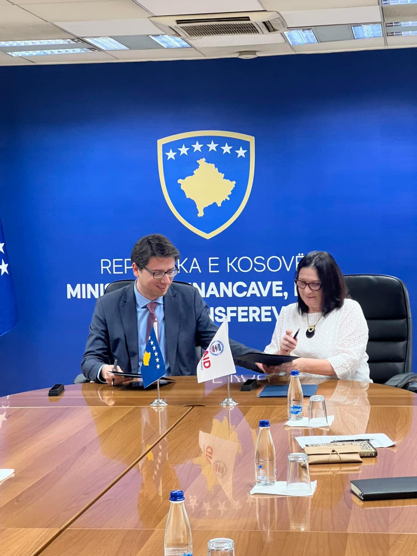 Ministri i Financave, Punës dhe Transfereve, Hekuran Murati së bashku me Drejtoreshën e Projektit “Integriteti i Komunave të Kosovës”, Znj. Maia Gogoladze nënshkruan sot marrëveshjen e mirëkuptimit për krijimin e sistemit elektronik për përcjelljen e faturave të dorëzuara nga operatorët ekonomikë tek organizatat buxhetore.