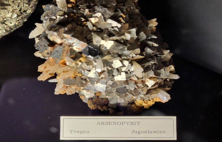 Në pjesën ku tregohet për gurët e çmuar, minerale dhe metale nga të gjitha vendët e botës, është edhe një nga miniera e Trepçës në Mitrovicë.