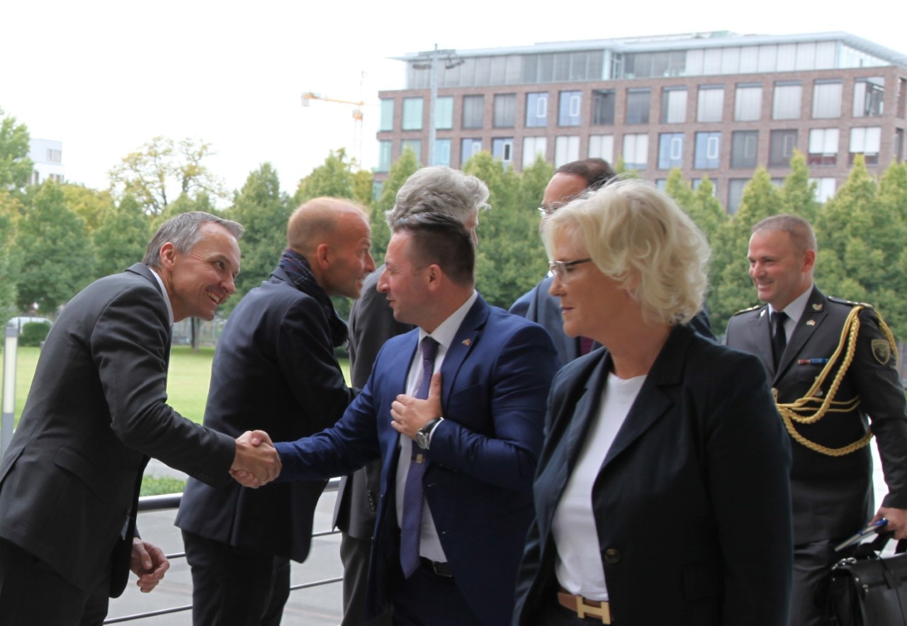 Në kuadër të vizitës zyrtare dyditore në Gjermani, Ministri i Mbrojtjes, Armend Mehaj bashkë me ambsadorin e Kosovës në Gjermani, Faruk Ajetin në Ministrinë e Mbrojtjes së Gjermanisë – Bundeswehr, u pritën nga homologia e tij, Ministrja e Mbrojtjes, Christine Lambrecht dhe stafi i saj.