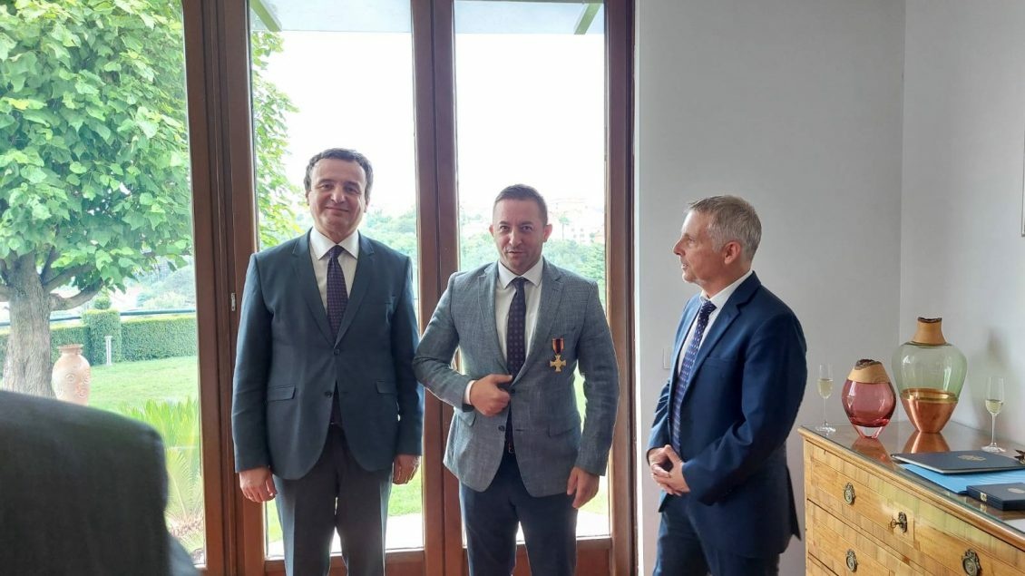 “Kënaqësi të jem pjesë e një ceremonie ku ministri ynë në largim i Mbrojtjes, Armend Mehaj u dekorua me Kryqin e Nderit në Ar të Forcave të Armatosura Federale Gjermane… Falënderoj ministrin Mehaj për kontributin kaq të madh dhe falënderoj ambasadorin gjerman, Rohde për mirënjohjen”, shkruan Kurti në Twitter.
