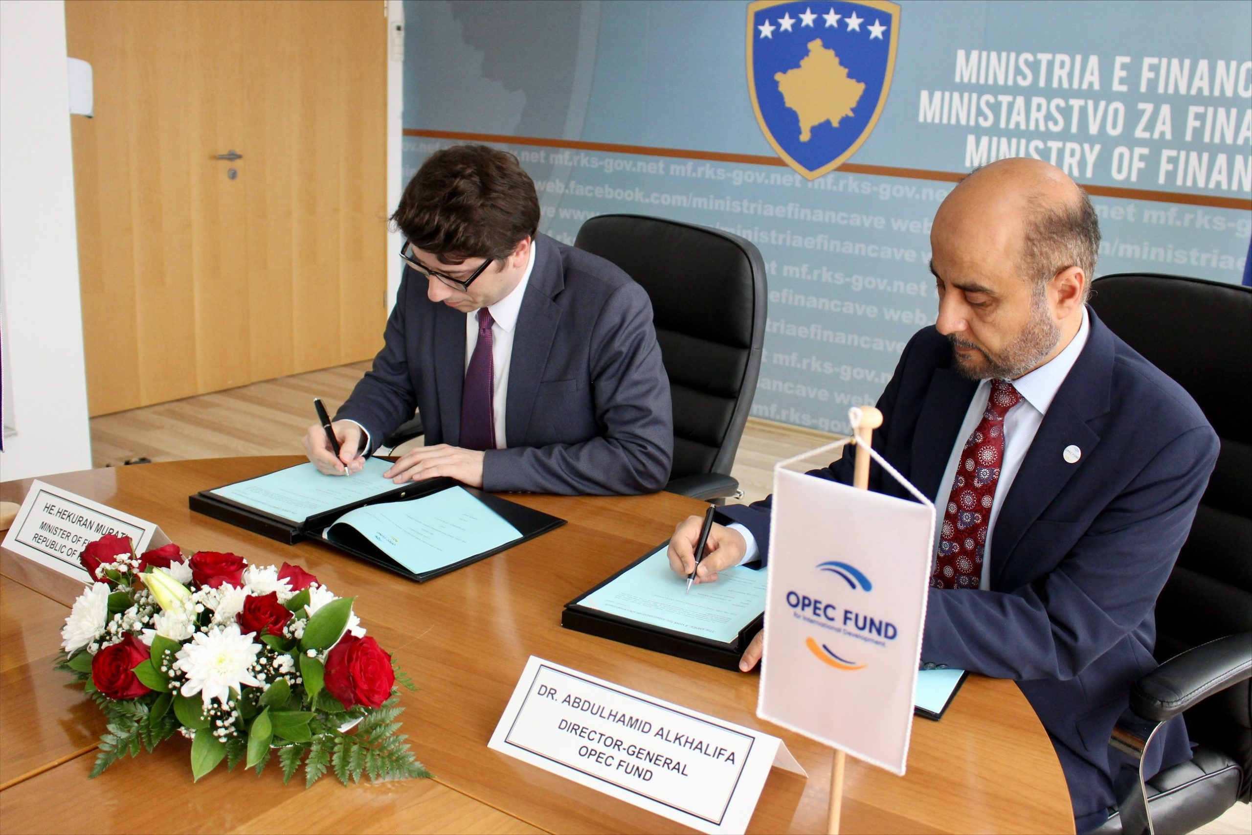 Në kuadër të vizitës së tij të parë në Kosovë, Drejtori Gjeneral i Fondit OPEC për Zhvillim Ndërkombëtar Dr. Abdulhamid Alkhalifa dhe Ministri Hekuran Murati nënshkruan marrëveshjen e kredisë për programin “Financat Publike të Kosovës dhe Rritja Ekonomike”, marrëveshje kjo që kap vlerën prej 40 milionë dollarë.