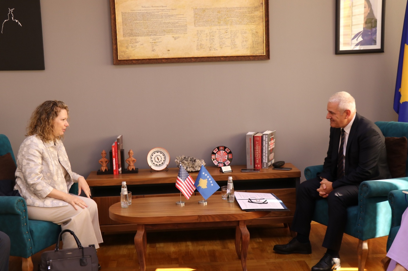 Ministri i Punëve të Brendshme, Xhelal Sveçla, priti në takim, Tamra Greig, e cila është emëruar shefe e zyrës së INL-së, pranë ambasadës amerikane në Prishtinë. Me këtë rast ministri Sveçla i uroi suksese në detyrën e re.