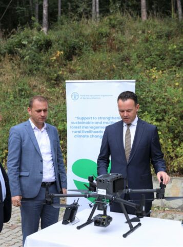Nga ana tjetër, Naser Krasniqi, përfaqësues vendor nga FAO në prani të Ministrit Peci bëri demonstrimin e funksionimit të dronëve të cilët kanë performancë të jashtëzakonshme, si dhe ofrojnë kapacitete të larta të monitorimit dhe incizime për analiza të ndryshme të terreneve pyjore.