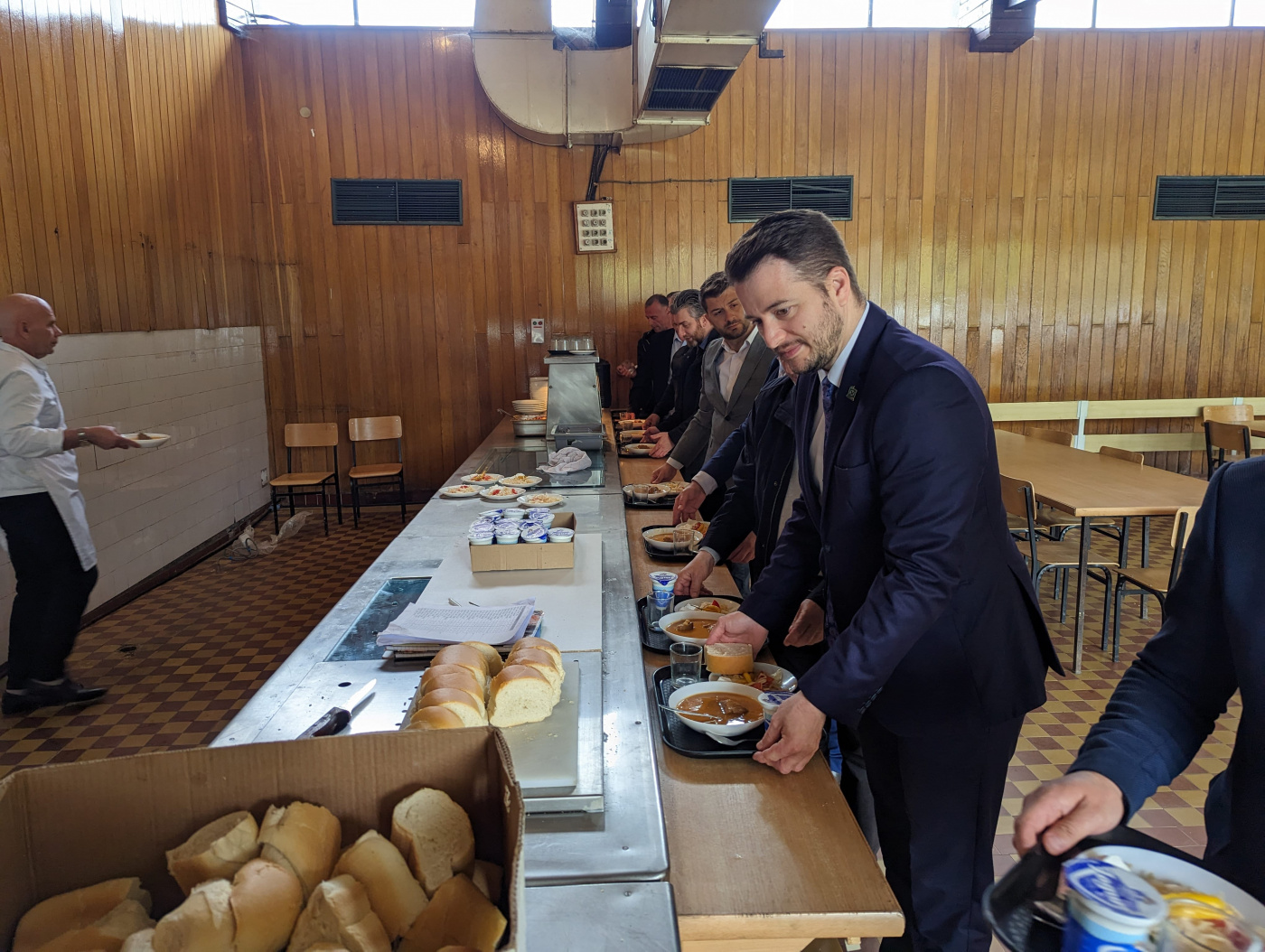 Zyrtarët e ministrisë, ndërmarrjes dhe komunës u ndalën për drekë pune në mensën e punëtorëve, që ka rinisur punën vjeshtën e kaluar, pas gati dy dekadash.