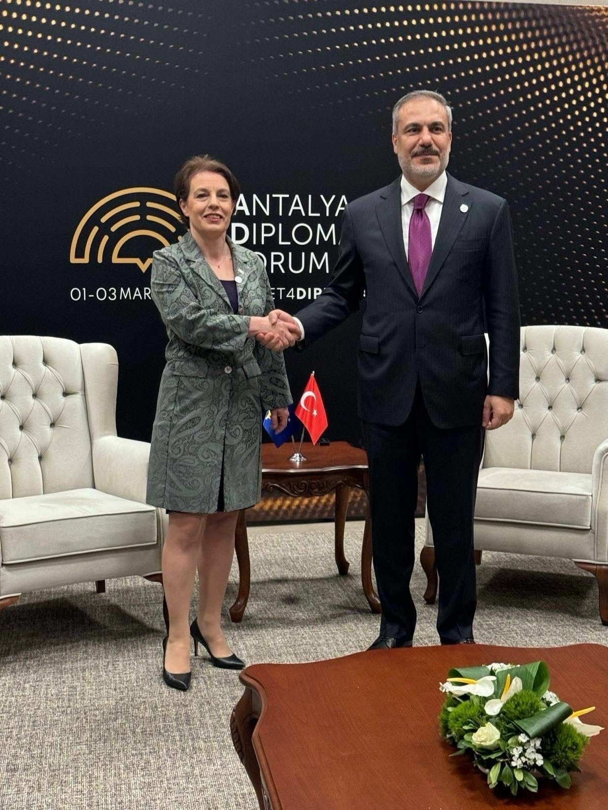 Zëvendëskryeministrja dhe Ministrja e Punëve të Jashtme dhe Diasporës e Republikës së Kosovës, Donika Gërvalla është takuar me Ministrin e Punëve të Jashtme të Turqisë, Hakan Fidan, në kuadër të ADF2024.