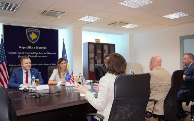 Sot në hapësirat e Ministrisë së Drejtësisë, Ministrja Albulena Haxhiu priti në takim një delegacion të prirë nga Zv. Ndihmës Sekretarja Lisa Johnson dhe Ambasadori amerikan Jeffrey Hovenier.