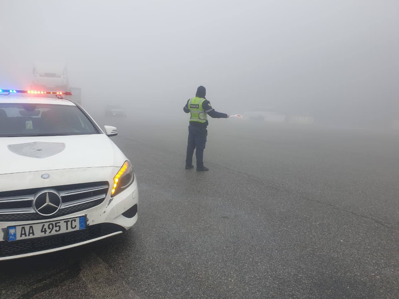 Policia Shqiptare ka apeluar për më shumë kujdes nga drejtuesit e automjeteve që qarkullojnë në Rrugën e Kombit, konkretisht në segmentin Tuneli i Kalimashit–Morinë, për shkak të prezencës së mjegullës dhe shikueshmërisë së reduktuar.