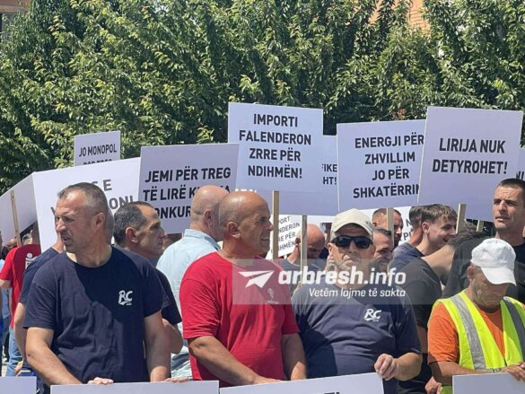 Gjatë protestës, pjesëmarrësit mbajnë pankarta me mbishkrime si “Mos na ndalni prodhimin”, “Liberalizimi i shpejtë i rrymës – monopol, jo konkurrencë” dhe “Pa transparencë – nuk ka treg të lirë”.