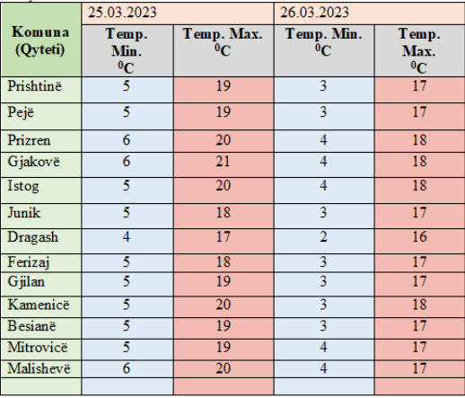 Instituti Hidrometerologjik ka njoftuar për motin që pritet të mbajë nesër e pasnesër.
