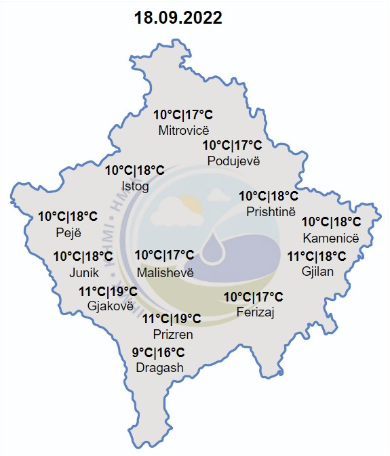 Temperaturat minimale do të lëvizin ndërmjet 9-11 gradë Celsius, ndërsa, maksimalet e ditës parashihen të lëvizin ndërmjet 16-19 gradë Celsius.