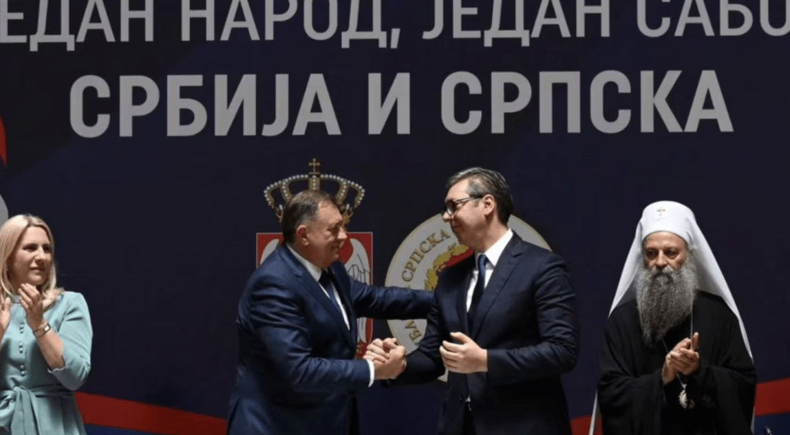 Më 8 qershor Vuçiq dhe Dodik në Beograd mbajtën një mbledhje të përbashkët të qeverive të Serbisë dhe të Republika Srpska nën moton “një popull, një mbledhje: Serbia dhe Srpska” – me Srpska nënkuptohet RS. Në këtë “asamble panserbe” Dodik erdhi direkt nga Moska, ku ai pritet vazhdimisht përzemërsisht nga presidenti Vladimir Putin dhe ministri i Jashtëm Sergej Lavrov. Në një mesazh përshëndetjeje Lavrov tha: “Bashkë me popujt e tjerë liridashës ne do të ndërtojmë një rend të ri botëror.” Vuçiq më parë pati thënë, se populli serb është i bashkuar dhe ndahet vetëm prej lumit Drina. Asambleja vendosi, që në të ardhmen të kremtohet bashkarisht festa kombëtare serbe më 15 shkurt në Serbi dhe në RS.