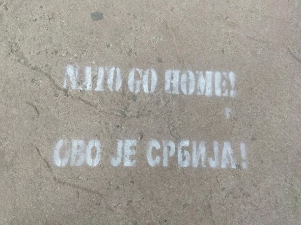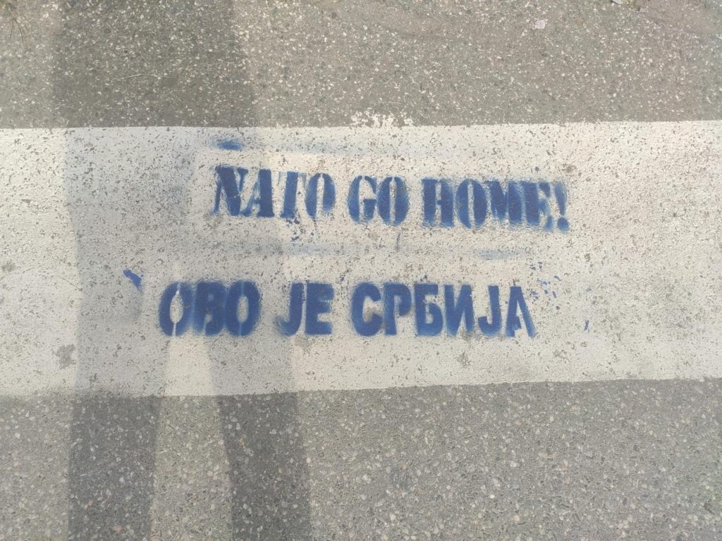 Grafiti i cili ishte në gjuhën angleze dhe atë serbe shkruante “NATO,shko në shtëpi, këtu është Serbi”.