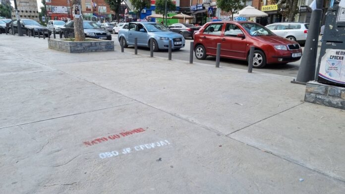 Në sheshin “Car Lazar” në Mitrovicën e Veriut është shfaqur një grafit kundër prezencës së NATO-s në Kosovë.