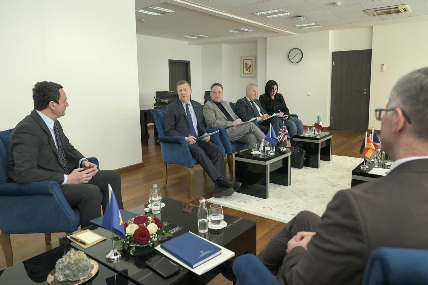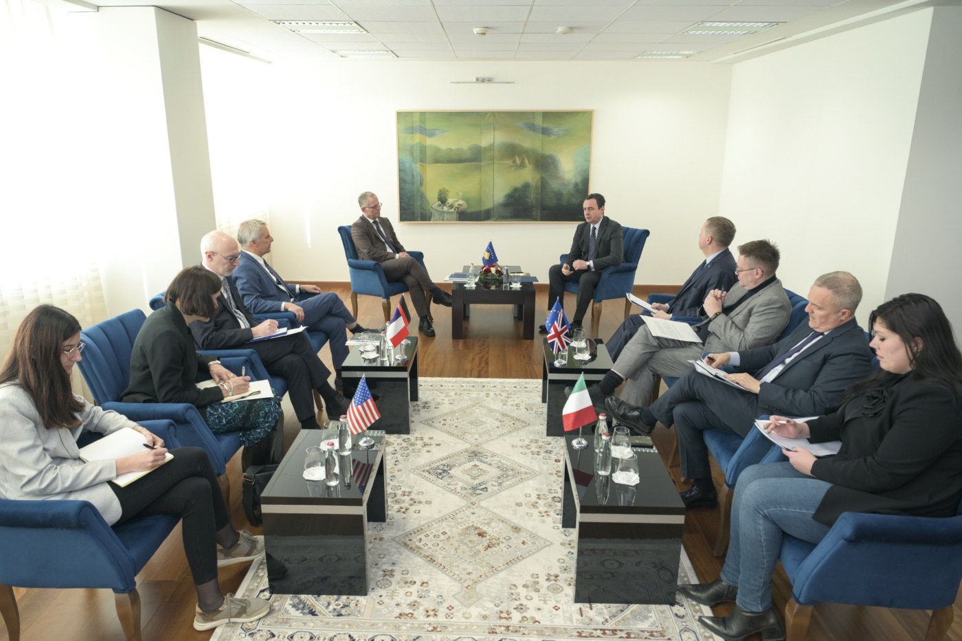 Kryeministri i Republikës së Kosovës, Albin Kurti, i shoqëruar nga zëvendëskryeministri i parë, Besnik Bislimi, takoi ambasadorët e shteteve të QUINT-it dhe Shefin e Zyrës së Bashkimit Evropian në Kosovë.