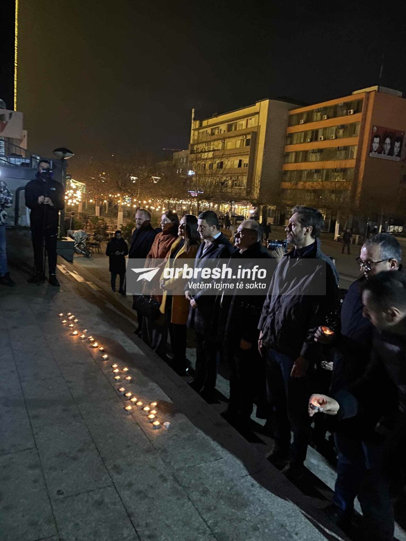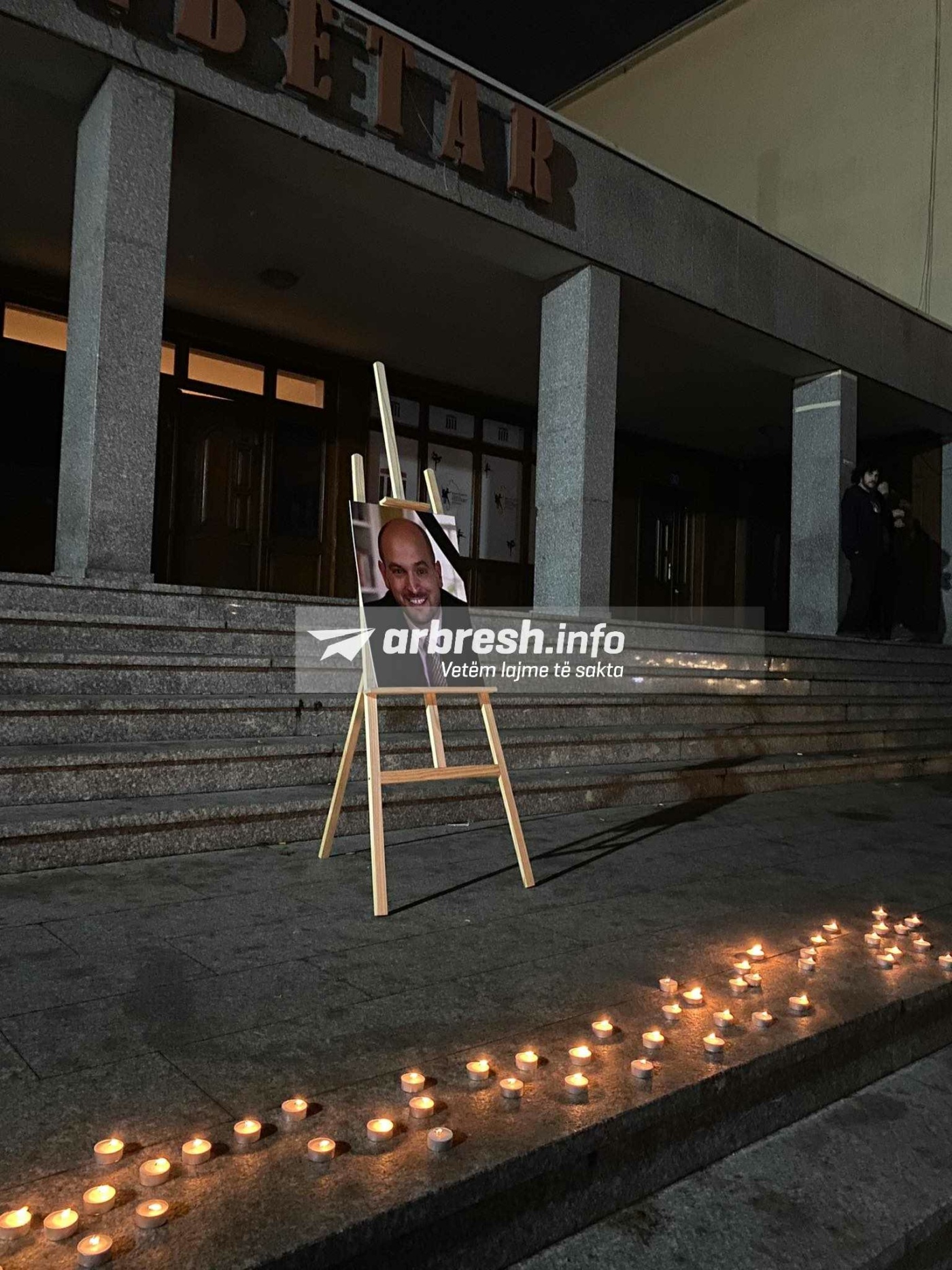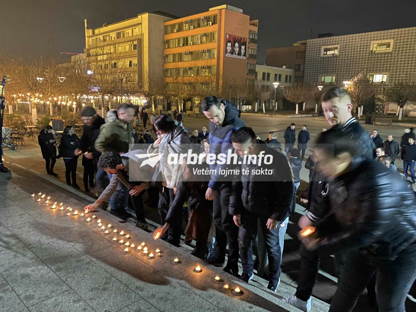 Për nderë të avokatit amerikan, Andrew Strog para Teatrit Kombëtar në Prishtinë janë ndezur qirinj me organizim nga platforma “Liria ka Emër”.
