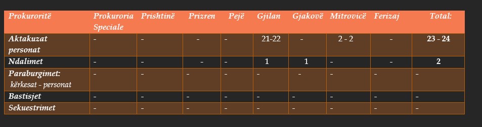 Prokuroria Themelore në Gjilan, me urdhër të prokurorit është ndaluar një person i dyshuar, si dhe, janë ngritur 21 aktakuza kundër 22 personave./arbresh.info/