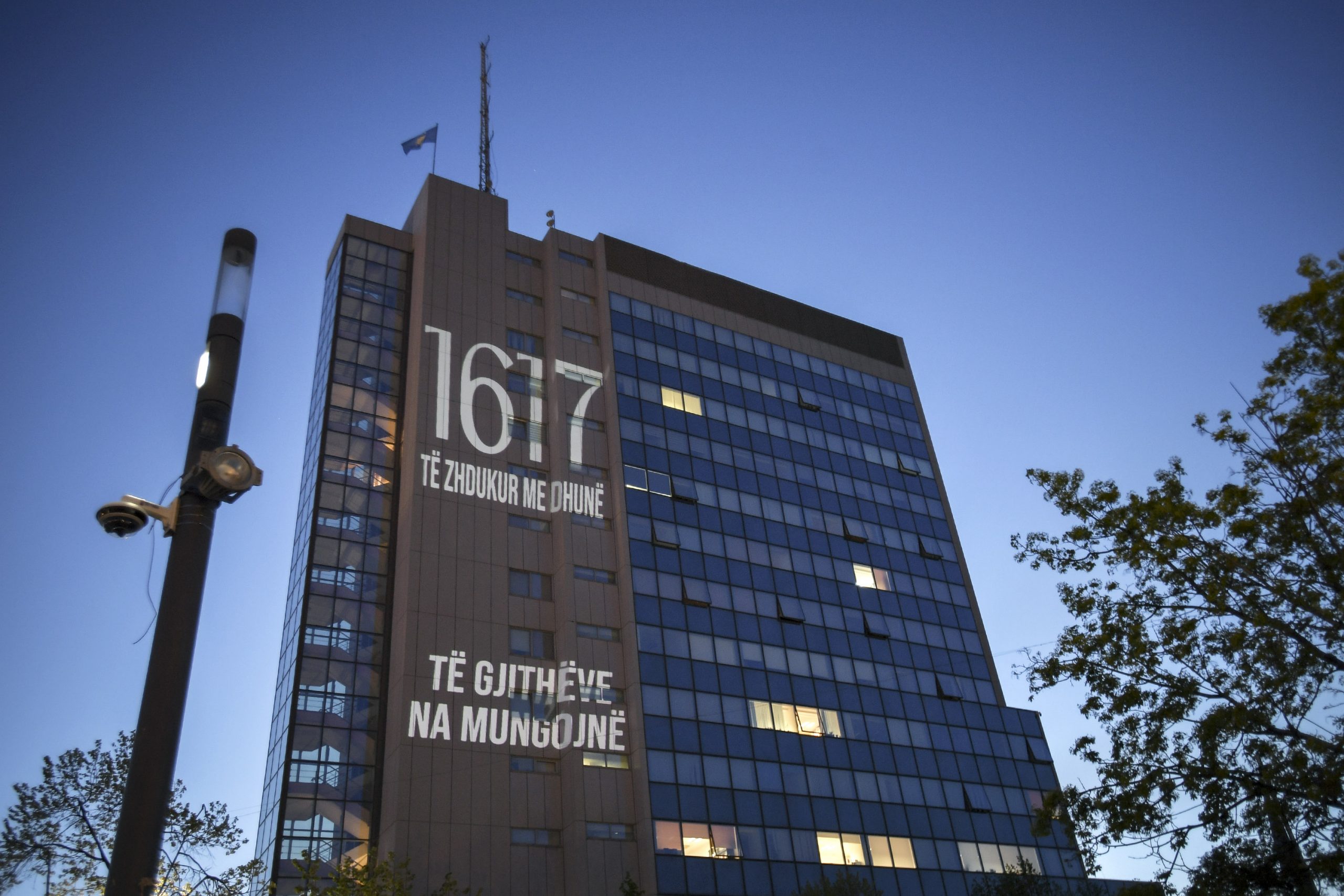 Në shënim të Ditës së të zhdukurve të Kosovës, Zyra e Kryeministrit të Republikës së Kosovës, ka ndriçuar ndërtesën e Qeverisë së Republikës së Kosovës me numrin 1617, që është numri i personave të zhdukur dhunshëm gjatë luftës në Kosovë.