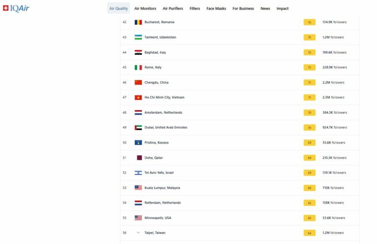 Kryeqyteti i Kosovës, sonte zë vendin e 50-të në botë sa i përket ndotje së ajrit.