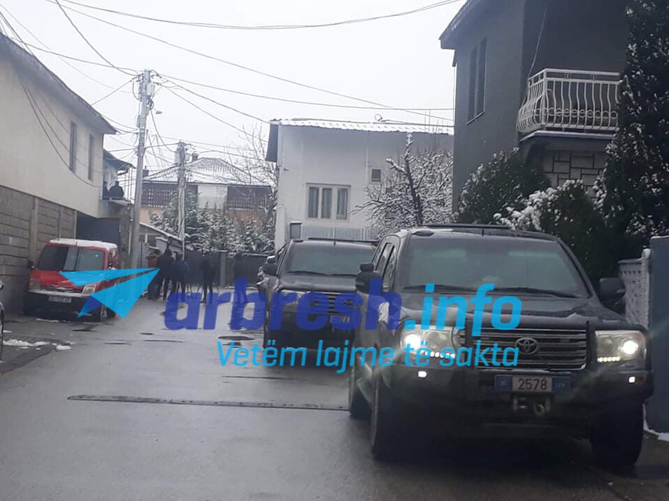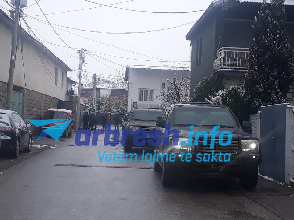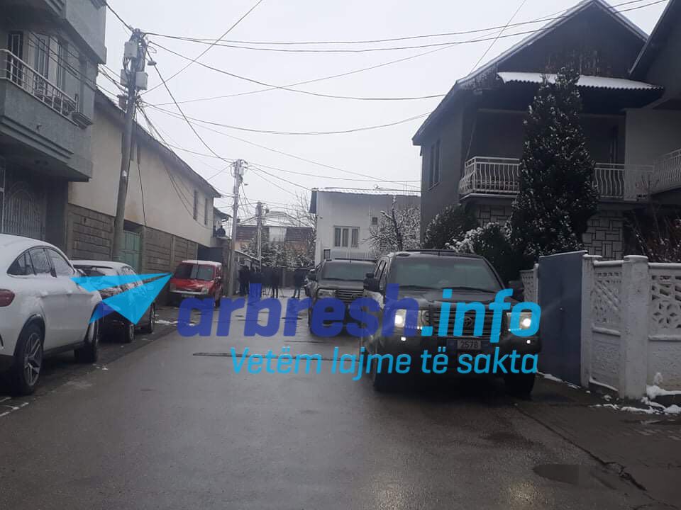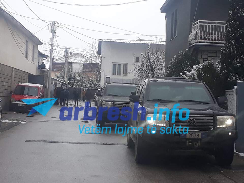 Para shtëpisë janë parë bashkëshortja e Veselit, Violeta Veseli dhe fëmijët.