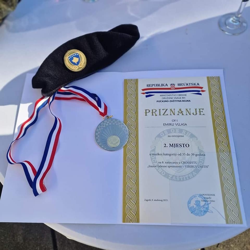 “Nënoficeri Emir Vllasa pjesëmarrës nga Kosova në garën, Military Crossfit competition “Virbus Unitis 2023” që është mbajtur në Republikën e Kroacisë, në garën shumë sfiduese ku pjesëmarrës ishim njësi të ndryshme të sektorit të sigurisë ,ushtarak, polic, njësi speciale intervenuse, forca detare, zjarrfikës, gardian etj, ka arritur rezultate te larta duke u radhitur i dyti në kategorinë ku ishte pjesëmarrës.