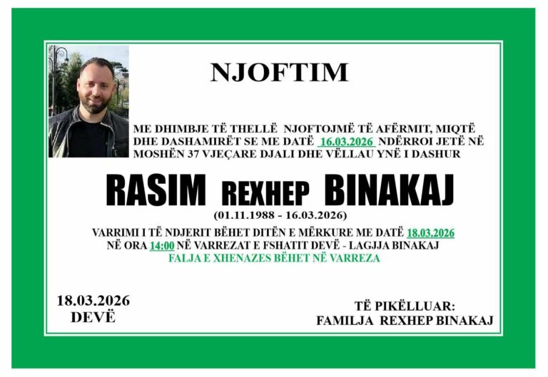Njoftimi u bë i ditur nga familjarët e të ndjerit.