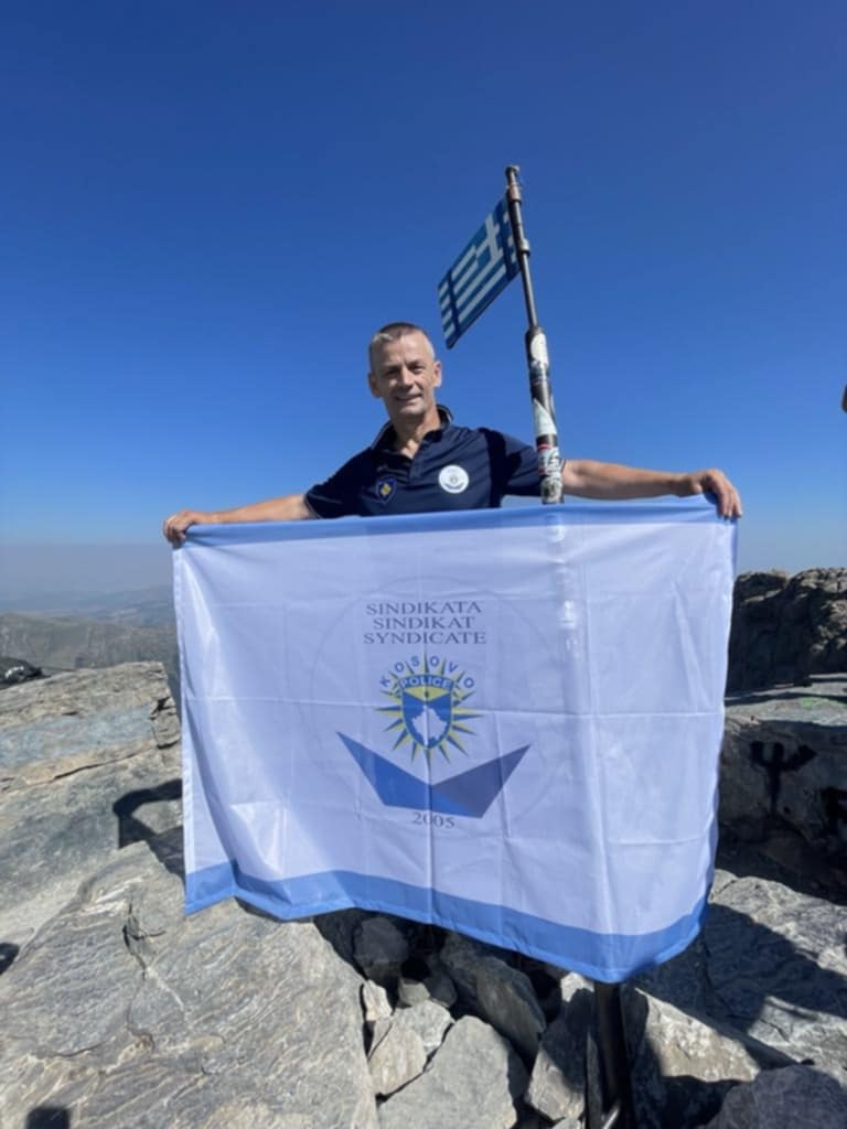 Aktivisti i njohur sindikal nga rajoni i Pejës, njëherësh zyrtari policor, Naser Zeqiraj ka ngritur flamurin e Sindikatës së Policisë së Kosovës në majën Mytikas (Olimpit) 2918 metra në shtetin grek.