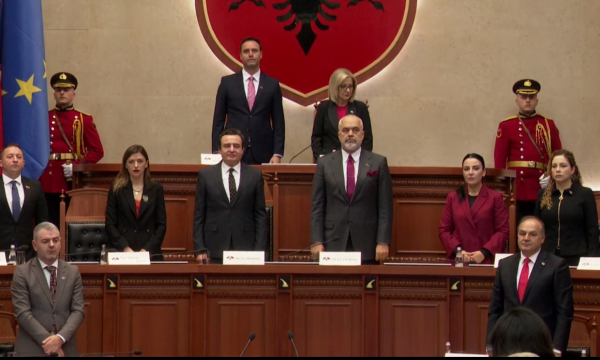 Në Kuvendin e Shqipërisë janë prezentë edhe kryeministrat, Albin Kurti e Edi Rama, derisa shihen dhe deputetët e opozitës.