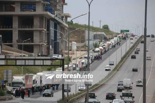 Kamionë të shumtë kanë bllokuar hyrjen në lagjen Veternik të Prishtinës.
