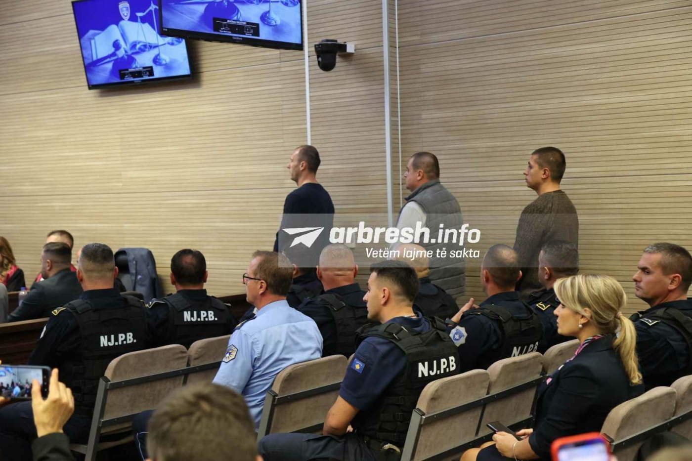 Të arrestuarit janë sjellur në Pallatin e Drejtësisë nën masa të rrepta sigurie. Përveç të akuzuarve në sallë po qëndrojnë edhe familjar të të akuzuarve.