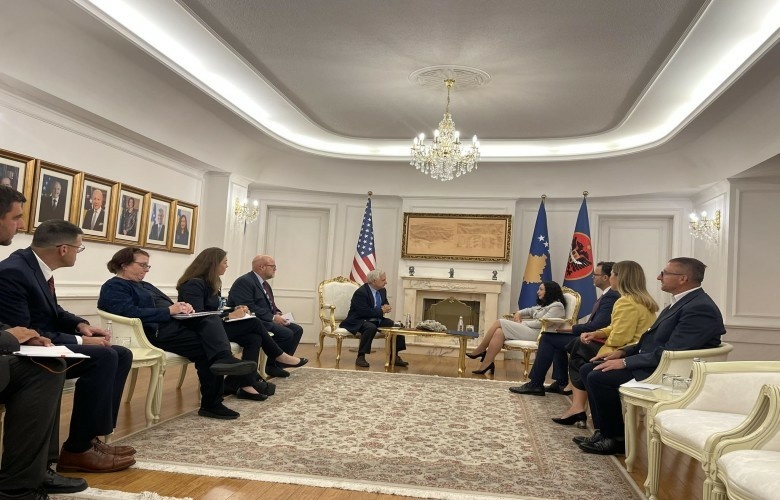 Në takim po merr pjesë edhe ambasadori i SHBA-së në Kosovë, Jeffrey Hovenier.