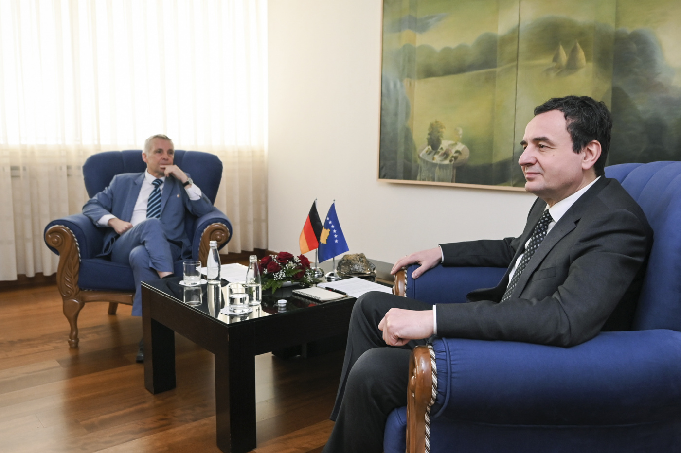 Kryeministri i Republikës së Kosovës, Albin Kurti, ka pritur në takim Drejtoren e Përgjithshme të Fondacionit Gjerman për Bashkëpunim Juridik Ndërkombëtar (IRZ), Frauke Bachler, Drejtorin për Evropën Juglindore të IRZ-së, Frank Hupfeld dhe ekspertët Doktorin e Shkencave të Drejtësisë, Stefan Trunk dhe Thomas Seidel, të dy me përvojë shumëvjeçare në prokurori, respektivisht polici dhe njësi të inteligjencës financiare në Gjermani, të shoqëruar nga Ambasadori i Gjermanisë në Kosovë, Joern Rohde.