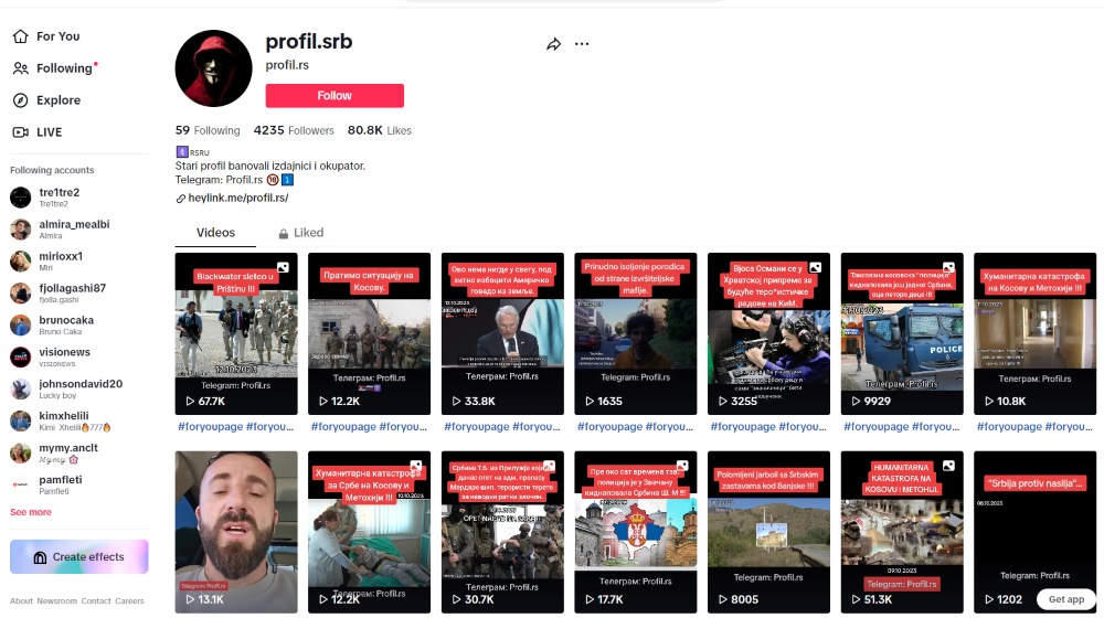 Por, nuk është kjo video e vetme e postuar në këtë profil kundër shtetit të Kosovës. Thuajse të gjitha postimet në këtë faqe janë nacionaliste dhe përmbajnë urrejtje kundër popullit dhe shtetit Kosovës.