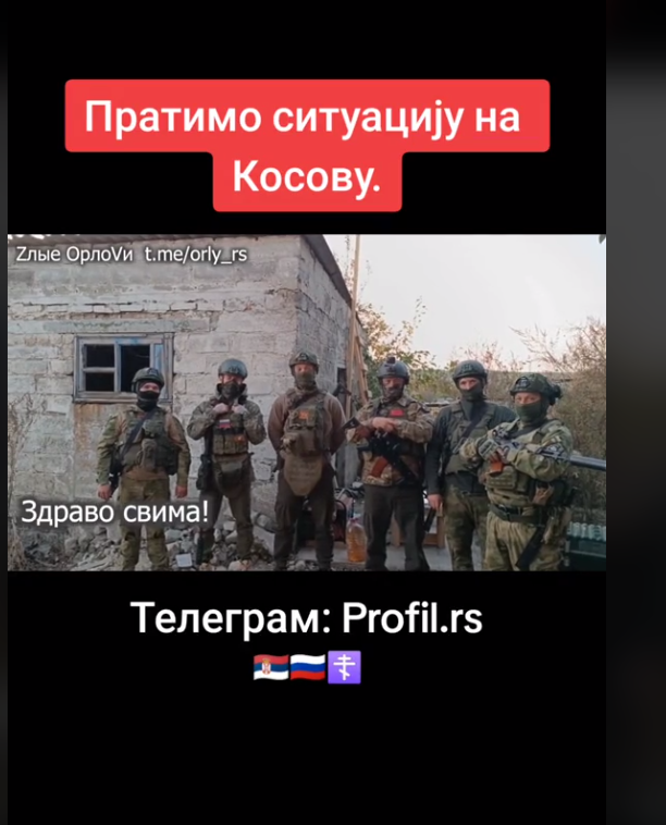 Në këtë video ku shihet një grup prej gjashtë personash, ata thonë se janë duke monitoruar situatën në Kosovë dhe se janë të gatshëm për t’iu bashkangjitur grupeve terroriste serbe.