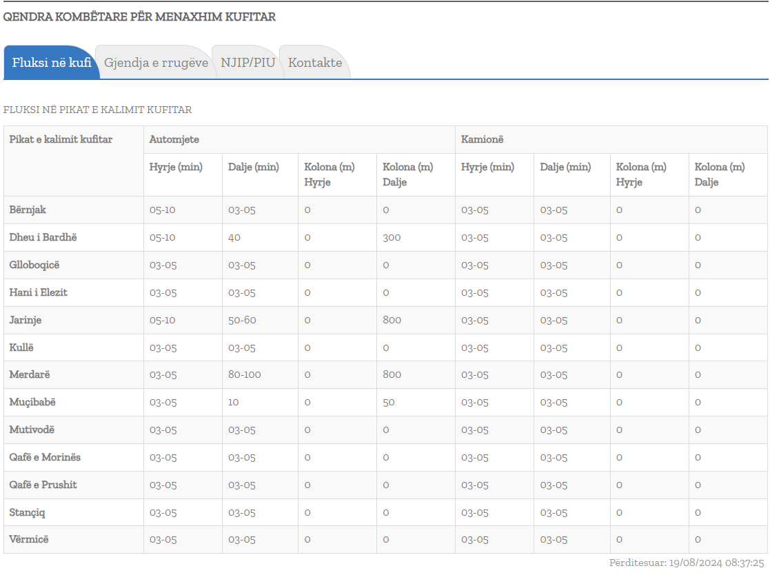 Sipas Qendrës Kombëtare për Menaxhim Kufitar, në pikën kufitare në Merdarë mërgimtarët po presin nga 80 deri 100 minuta (1 orë e 40 minuta) për të dal nga Kosova.